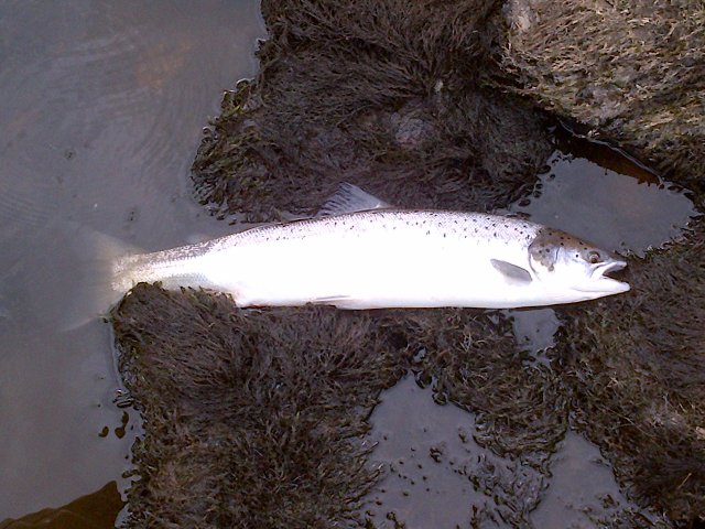 Well we got off to quite a good start on Monday morning with a 3lb Grilse being landed in Glister on a size 12 silver stoat & another lost, then a Grilse of 4lb was landed in Middle Salt Vat again on a silver stoat. Tuesday a Grilse of 5lb was landed in Grey Mare on a size 6 cascade and that was us for the week. The water temperature is cooling down a bit but we still need a flood to clean things out and get some fish in. The rain that was forecast yesterday didn't come to much but there is meant to be showers on and off for the coming week so maybe it might be enough.