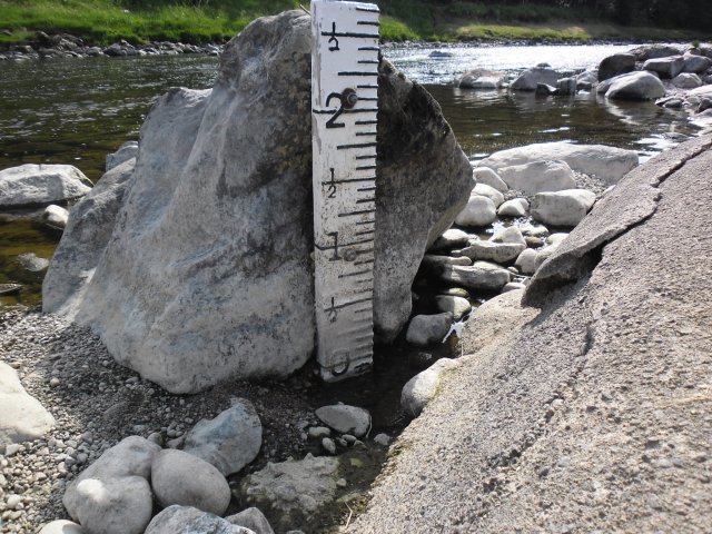 Well so much for the cooler weather! Maybe by a degree or two but not enough to give us a chance of a fish through the day with daytime temperature's a cosy 25/26c and again no sign of any cloud or rain so realistically late evenings and very early mornings were the only chance which our fishing party did persevere at with light tackle and a quiet approach however only one fish was connected with the whole week on Tuesday morning in Upper Ferroch which unfortunately got round a stone and broke the leader and that was it for the week. Until the weather breaks its going to be hard work but it is interesting seeing the pools and riverbed when its as low and clear as this. Picture below of a stone in the Cottage with the date 1955 on it with a mark chiselled out slightly below it, at the moment we're about 3ins from that mark. Other picture below is looking down the Spout. Hope to have some fish to report next week