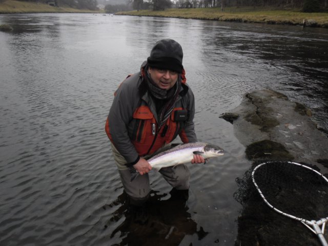 The week started off with the river sitting at 1' and the water temp still a very cold 36f but looking good. We had a very good party of Swedish anglers fishing who really knew what they were doing and certainly put the hours in, however only one was landed by Jonas Runnberg in Invercannie, a cracking 15lber on Wednesday (pictured below). Fish were lost in the Cottage on Monday and a fish was lost at the bank in the Grey Mare on Friday and the usual one or two kelts were landed each day but we are needing a lift in water level and water temps before things improve I think .