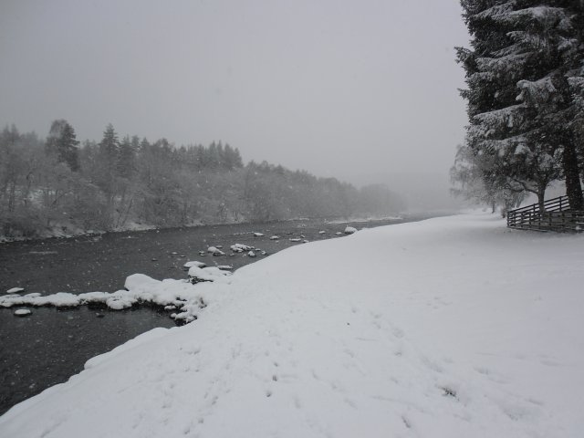 This week last year we started to see fresh fish going through, so I was very hopeful to see some caught/landed this week, especially with a good rise of water on Sunday night. The rods we had were very good fishers and covered the water well with all sorts of lines and flies but although we did see the odd clean fish it was only kelts that were landed up until Thursday when Joe McGinty, fishing with Tom Blacks party, landed a lovely 8lb fresh fish from the Long Jetty (pictured below). Stewart Beveridge landed a small Sea Trout in Invercannie so at least that ended our 2 week drought of fish. Although things are a bit slow at the moment I am sure the fish will arrive, maybe a slight rise in water temperature will help although as you will see from the second picture below, taken this afternoon, I don't think it is going to rise too quickly.