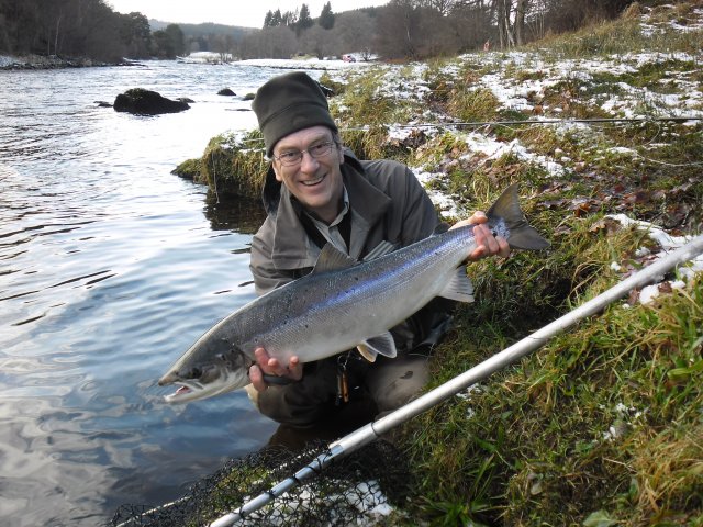 Hope you have all had a good winter and we wish you tight lines for 2013. On opening day with a good water height and no grue to contend with this year things were looking very favourable for an early spring fish. With a couple of baggots caught in the morning and a dozen kelts the hope of catching an opening day fish were fading but Michael Ritchie from Fraserburgh managed to hook and land a lovely 9 lber from the Colonel with his first cast after lunch and follwed up very quickly with a fish of similar size from the Lower Ferroch and that was the very pleasing tally for opening day. The following day quite surprisingly very few kelts landed but another 2 clean fish were landed, the biggest being a cracking 15 lber caught in Invercannie by Graeme Caton. (pictured below)